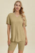 Basic Bae Full Size Ribbed V-Neck Short Sleeve Top and Shorts Set